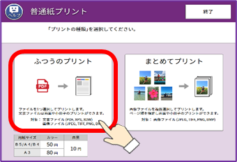 ➁プリントメニューから[普通紙プリント]を選択してください。