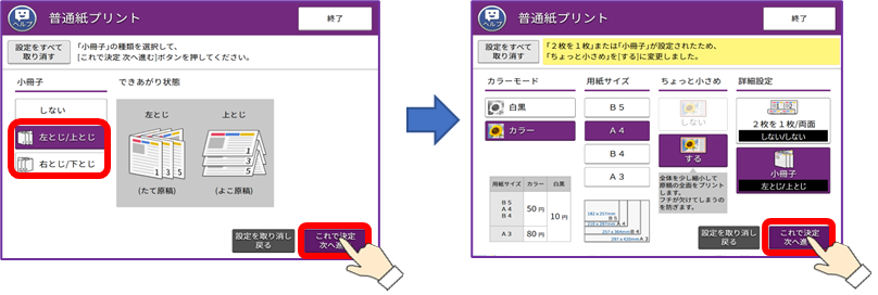 小冊子プリントの操作方法が知りたい