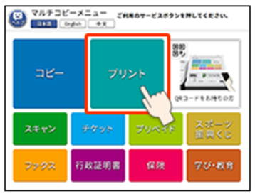 ① マルチコピー機のメインメニューから[プリント]を選択してください。